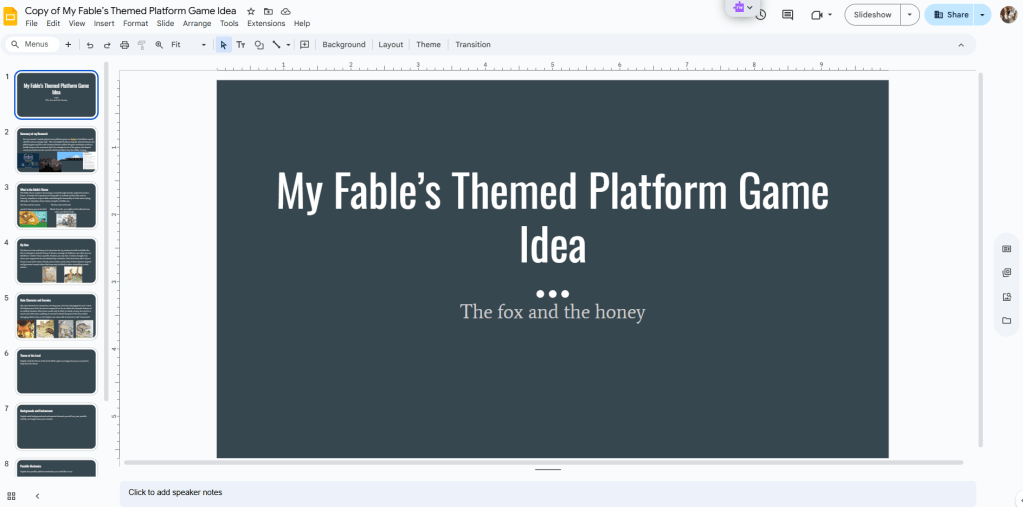 the process of making my pitch about my platform game.
