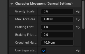 in unreal, we played around with changing and editing the gravity scale for our characters. at first i used 0.6, it was floaty and moved around easily. it make quick air movements simple and fun. then i changed the gravity to 0.3, it was very lightweight, floating around and taking a while to come back down. it also allowed for me to travel further in shorter times since i could launch my character higher. the first picture shows the character with gravity 0.3 and the second photo shows the character with 0.6 gravity.